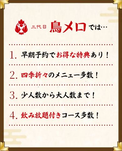 ●枝豆 ●本マグロのお刺身 ●有機生姜ドレッシングで食べるメロメロサラダ ●国産黒毛和牛のすき焼き鍋 ●名物!清流若どり もも1本揚げ ●ピーマンつくねのチーズソースがけ ●名物!清流若どり デカもも串1本 ●大海老の秘伝チリソースがけ ●ねぎとろのっけ寿司 ●〆うどん