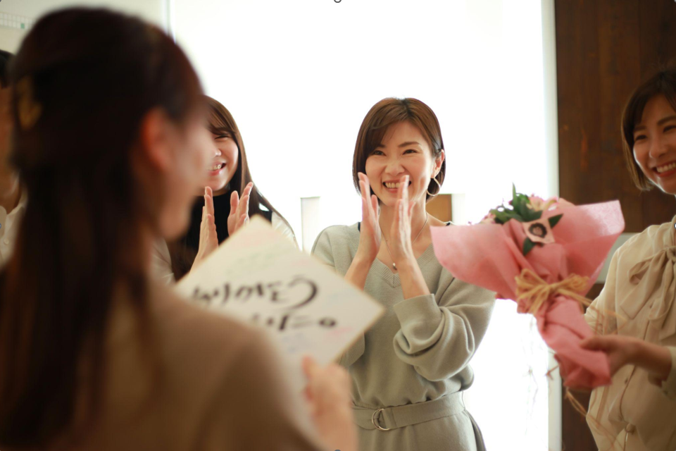 準備を頑張った幹事さんも、出し物を披露した同僚も、そして送り出される主役も。